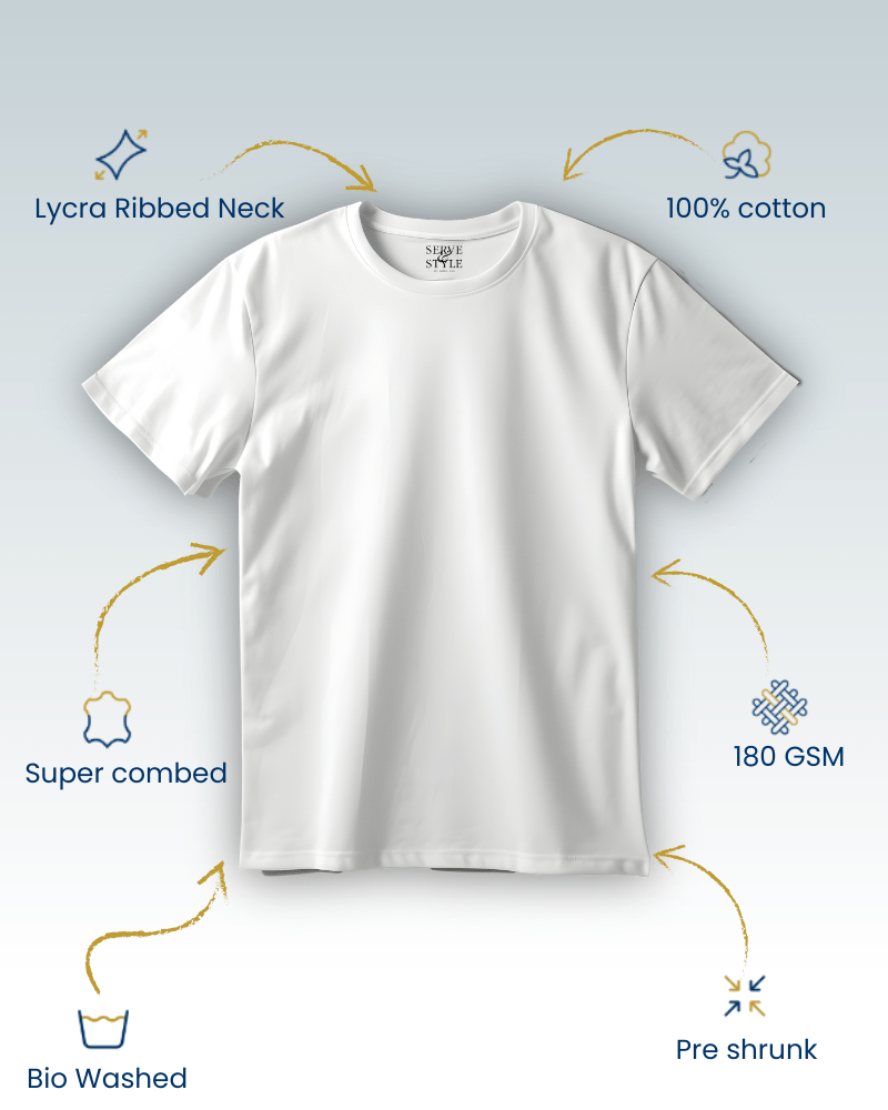 Made from 100% super combed cotton, this t-shirt ensures exceptional comfort and long-lasting wear. The pre-shrunk, bio-washed fabric maintains its shape and softness wash after wash, while the Lycra ribbed neck provides a flexible fit, ideal for active lifestyles.
